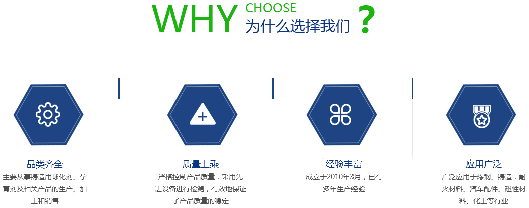 江蘇旦晨新材料科技有限公司、鎮江市勤成鑄造材料有限公司于2010年3月,成立于美麗的水上花園城市—江蘇揚中,公司是一股份制企業,注冊資本為200萬人民幣,主要從事鑄造用球化劑、孕育劑及相關產品的生產、加工和銷售。 公司引進日本企業的生產管理模式,半自動化生產方式。目前生產能力:球化劑250T/月、孕育劑300T/月、鑄造相關品200T/月。為嚴格控制產品質量,公司采用國內的ICP-AES等離子體發射光譜儀對采購原